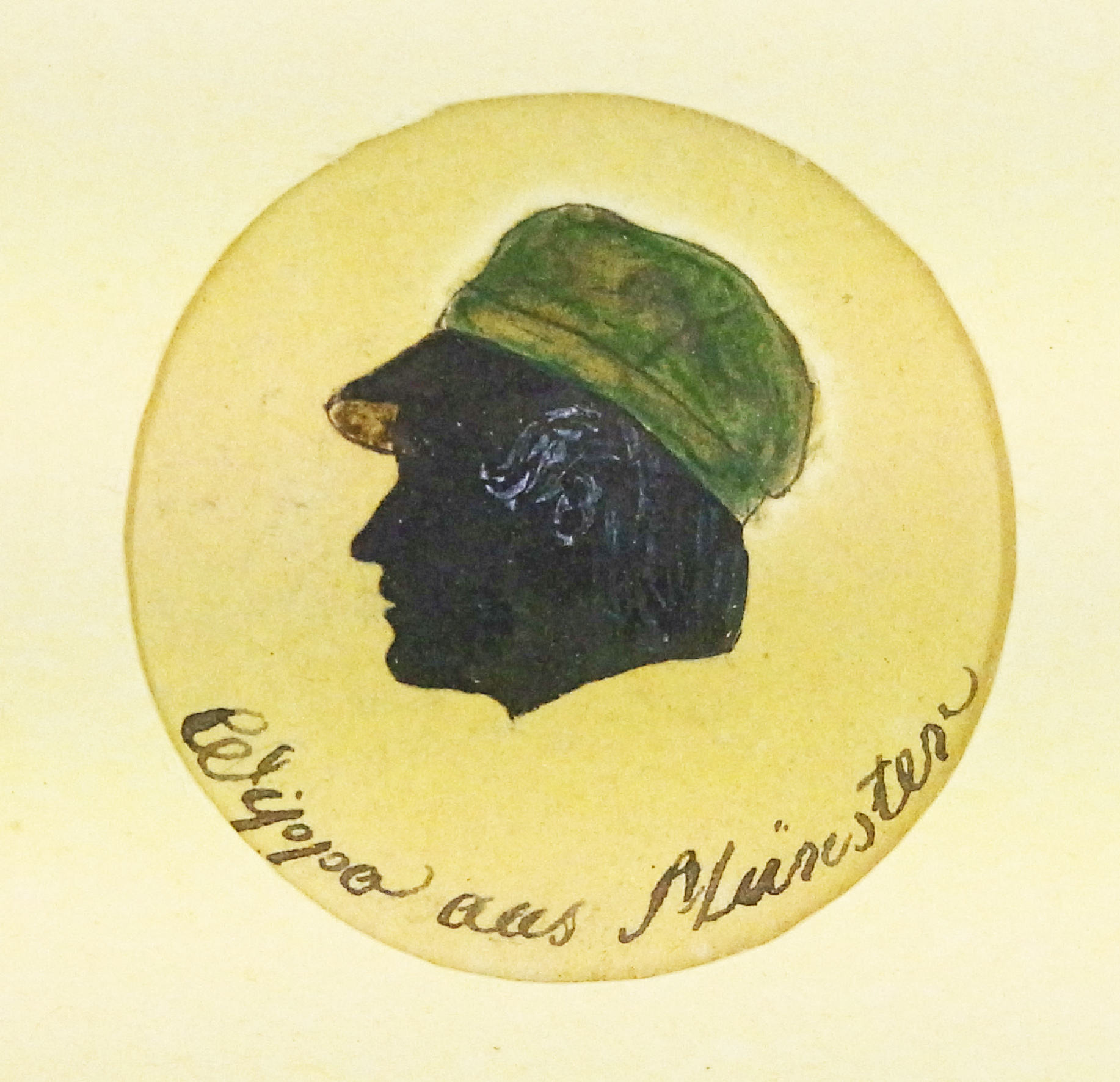 Unbekannter Künstler, Scherenschnitt-Porträt Werner A. Wippo, um 1870/1890; Tusche koloriert auf Papier, H. 7,5 cm x B. 7,5 cm (LWL-Museum für Kunst und Kultur, Westfälisches Landesmuseum, Münster).