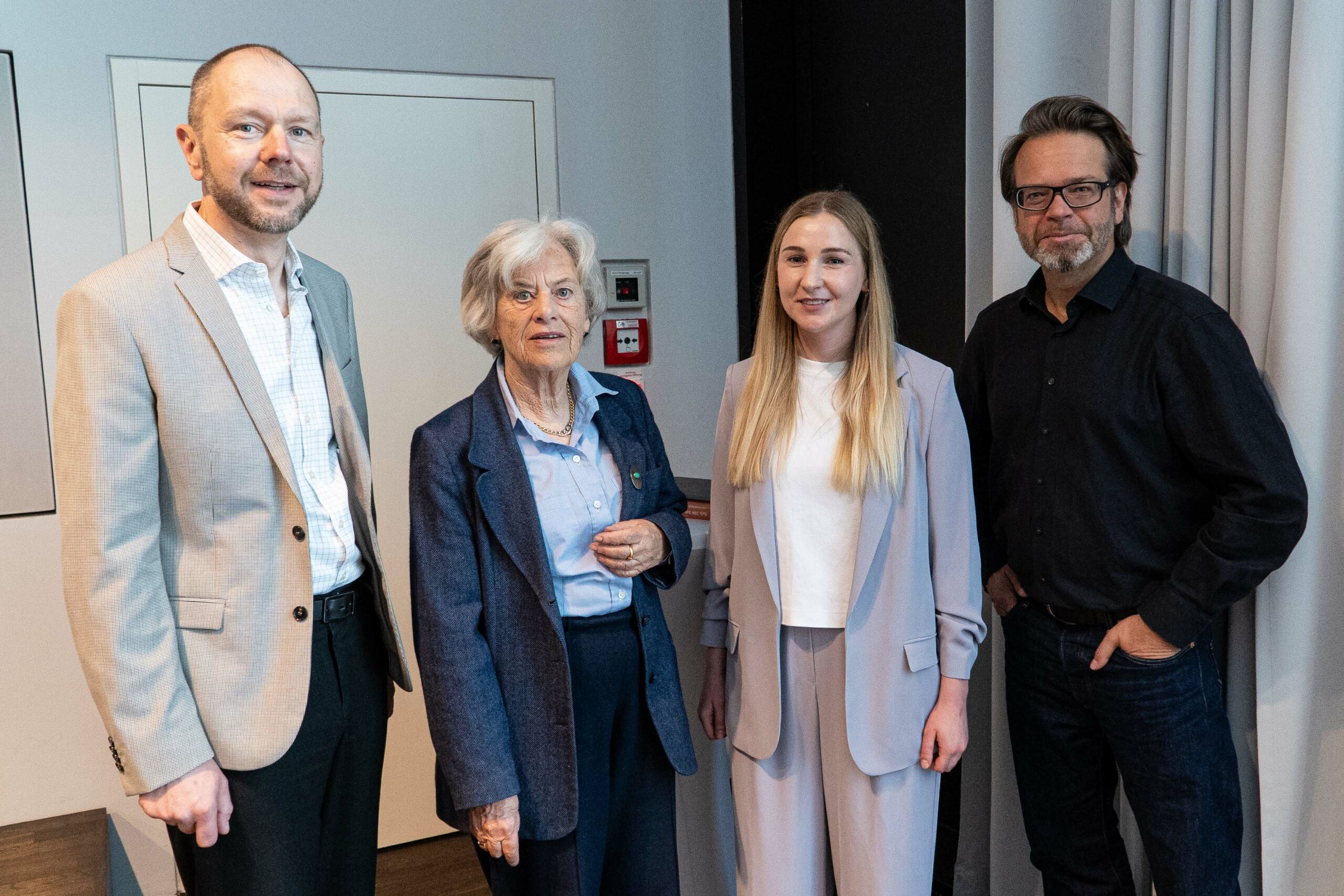 Im Bild (v. li) Prof. Dr. Heide Barmeyer-Hartlieb, die Preisstifterin, Dr. Leo Klinke, Prof. Dr. Mechthild Black-Veldtrup, Vorsitzende des Vereins für Geschichte und Altertumskunde Westfalens, Abt. Münster, und Prof. Dr. Michael M. Rind, Doktorvater und Laudator.